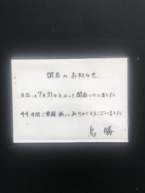 2023年7月に閉店した「鳥勝」跡地でのオープンになります(食べログより参照)